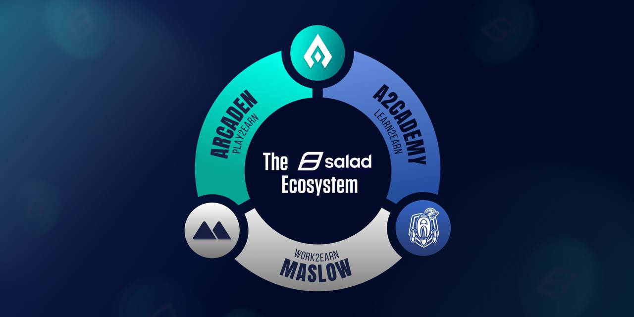 Partner projects can benefit from the Salad ecosystem by using Arcaden to acquire users, A2cademy to educate them, and Maslow to provide jobs as they grow.